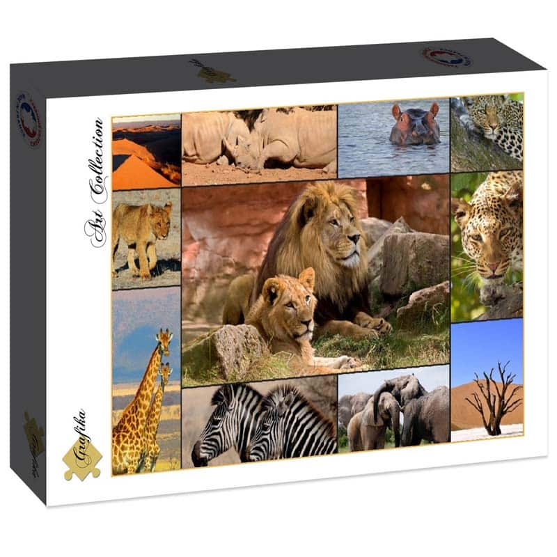 Ett detaljrik kollage pusselmotiv från Grafika som skildrar vilda djur.
