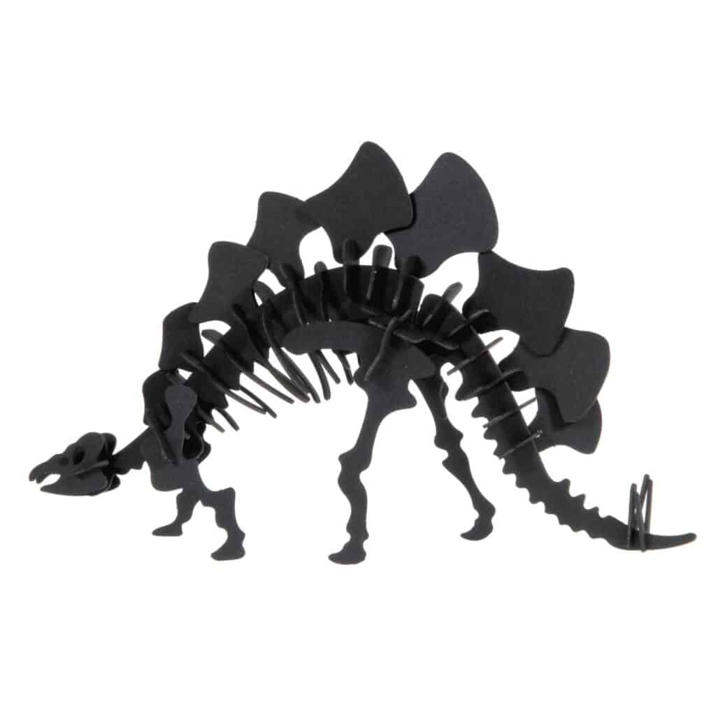 Vik, tryck ut och fäst ihop de förpräglade delarna i rätt ordning – inga saxar eller lim behövs. Steg för steg växer Stegosaurusens kropp fram; Där varje del är noggrant utformad för att ge realistiska konturer.