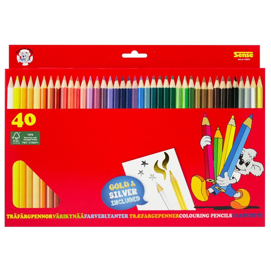 Sense Träfärgpennor 40-pack är idealiska för skola, pyssel, teckning, färgläggning, illustrationer och hobbyprojekt – kort sagt, allt som låter kreativiteten flöda fritt!